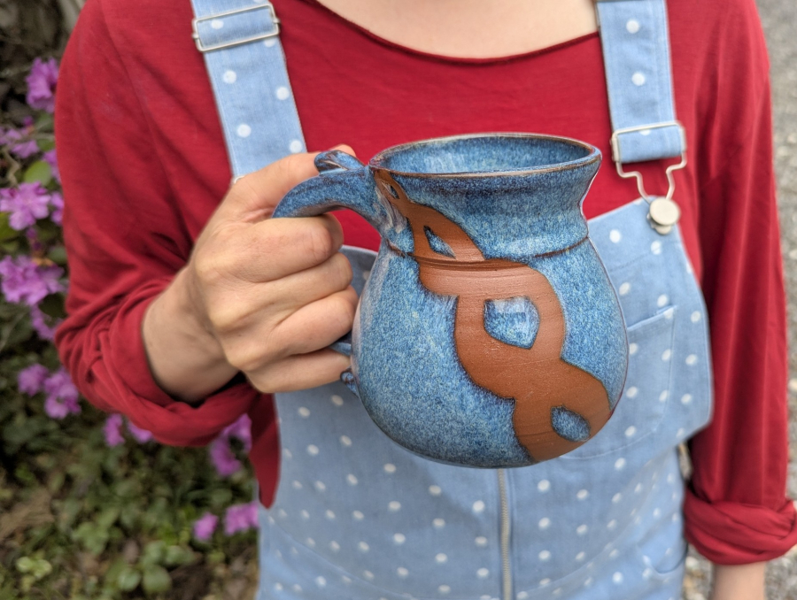 Slate Blue Mug with Rust Chain - Handmade to Order