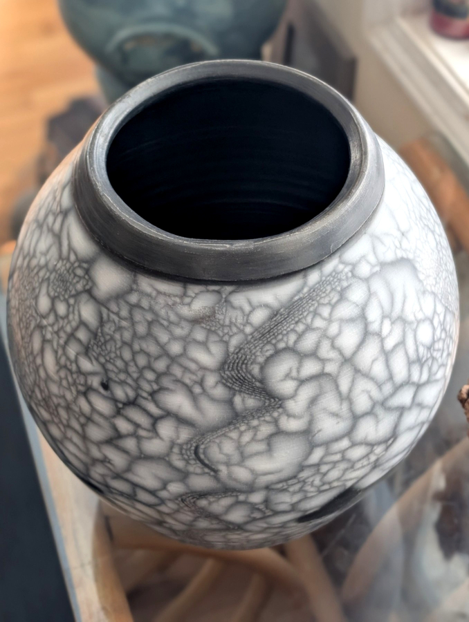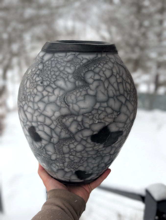 Large Black and White Marbled Raku Vase - In Stock and Ready to Ship