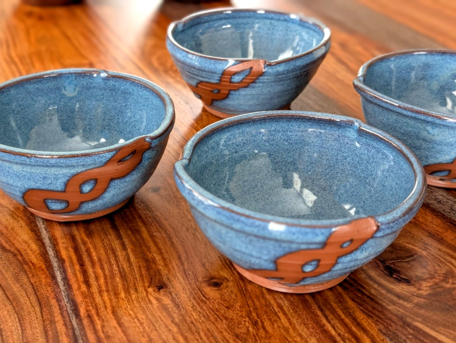 Set of Four Snack Bowls or Rice Bowls in Slate Blue and Rust Chain - Handmade to Order