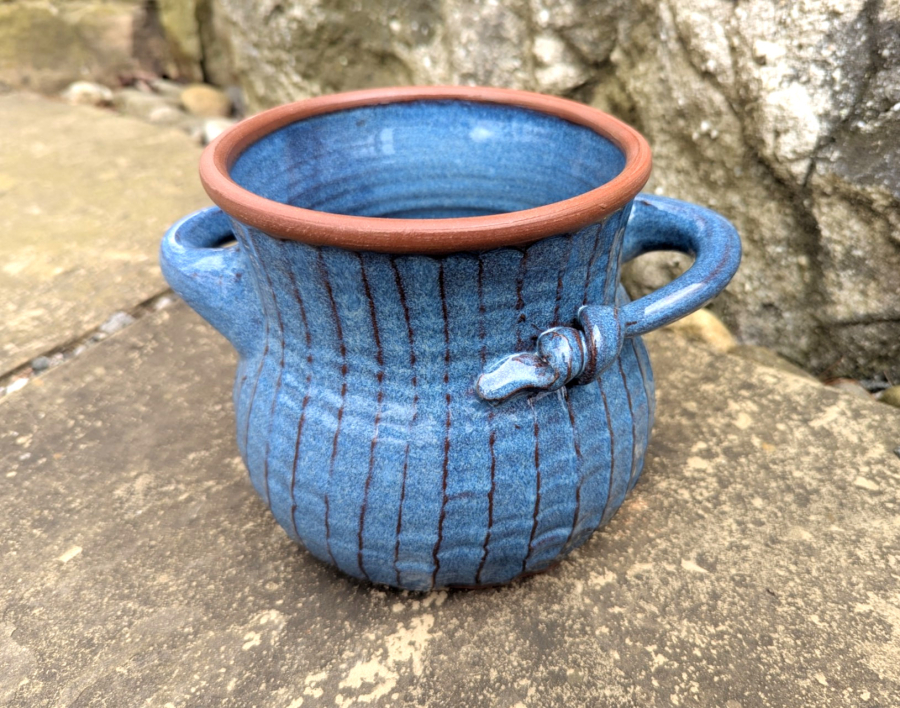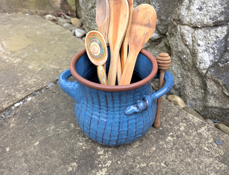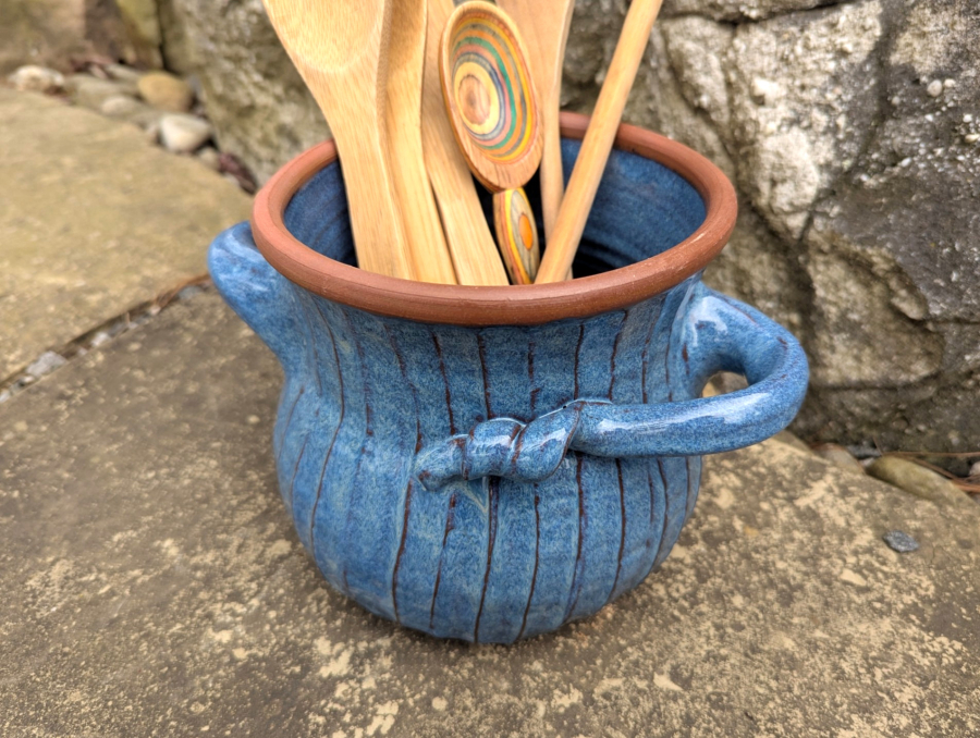 Ridged Utensil Holder in Slate Blue - Handmade to Order