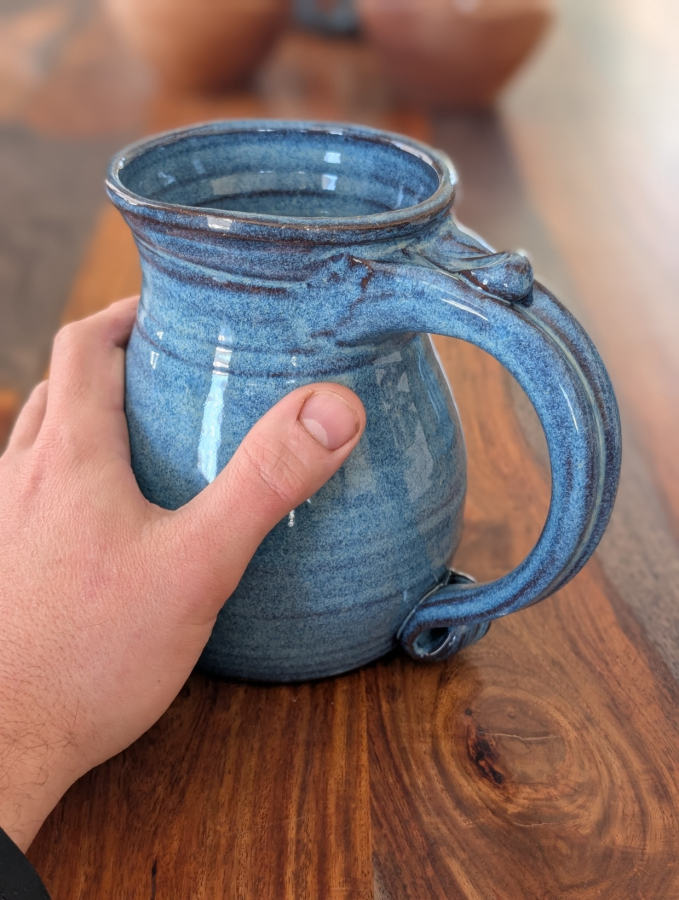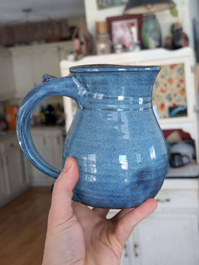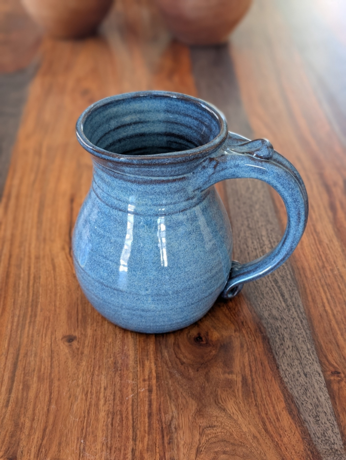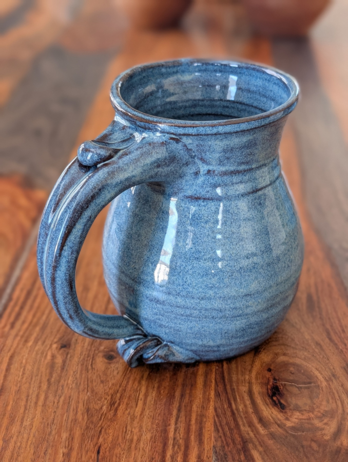 This huge slate blue mug is perfect for so many things. We use it for a iced tea mug and as a beer mug or stein.